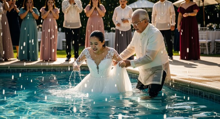“ITINULAK AKO NG ASAWA KO SA SWIMMING POOL SA ARAW NG KASAL NAMIN — PERO ANG GINAWA NG TATAY KO ANG NAGPAIYAK SA LAHAT NG BISITA.”