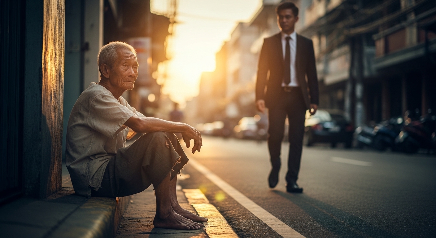 at nagkunwaring isang pulubi.