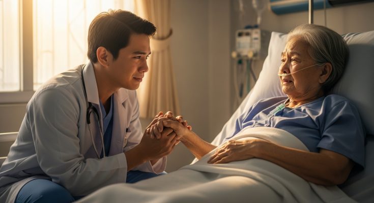 Habang nakahiga siya, hinawakan niya ang kamay ko, mahina pero may lakas ng pagmamahal.