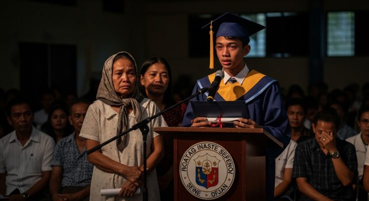 “Maraming salamat po sa mga guro, sa mga kaklase, sa lahat ng nandito. Pero higit sa lahat, salamat sa isang taong madalas n’yong nilalait — sa nanay kong namumulot ng basura.”